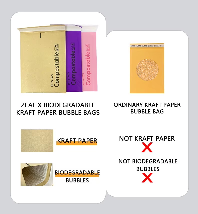 باعتبارها شركة مصنعة محترفة للأكياس الورقية، تقدم Zeal X أجهزة إرسال فقاعات ورق كرافت قابلة للتخصيص بالكامل وقابلة للتحلل البيولوجي، بما في ذلك الأحجام المخصصة وطباعة الشعار وخيارات وزن الورق. تتميز أجهزة البريد القابلة للتحلل البيولوجي بنسبة 100%، وغير سامة، وخالية من التلوث، مما يجعلها مثالية لاستراتيجيات التعبئة المستدامة. بفضل المقاومة القوية للتمزق، والتصميم خفيف الوزن، والحماية الموثوقة للتسليم السريع، فإن أجهزة إرسال الفقاعات الورقية من ورق الكرافت الخاصة بنا تحظى بثقة بائعي التجارة الإلكترونية العالميين الذين يبحثون عن حلول شحن صديقة للبيئة وخالية من البلاستيك.
