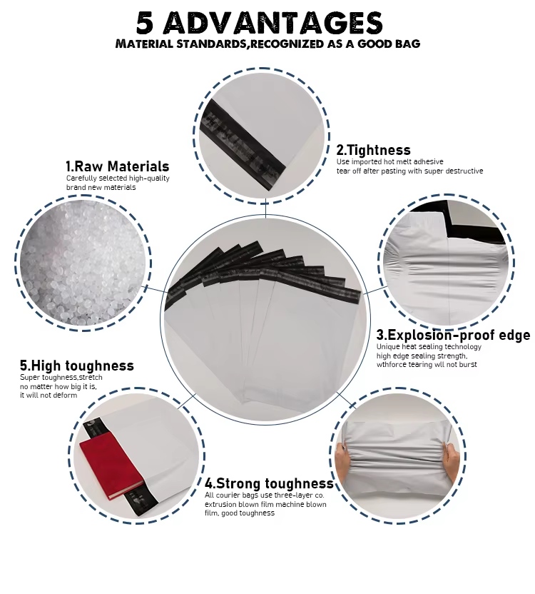 الجديدالمعاد تدويرها بولي ايثيلين بوليباغتم تصنيعه باستخدام مواد البولي إيثيلين المعاد تدويرها الممتازة ومعتمدة بموجب GRS (المعيار العالمي المعاد تدويره). مع الامتثال الكامل للمعايير البيئية للاتحاد الأوروبي، يعزز حل التغليف هذا التزام Zeal X بالاستدامة والإنتاج المسؤول. تتميز الأكياس البلاستيكية بأداء ممتاز ضد الماء، ومقاومة عالية للتمزق، ومواد خالية من الروائح، وقابلية إعادة التدوير بنسبة 100%، مما يجعلها مثالية لتغليف الملابس، وتغليف الأحذية، وشحنات البريد السريع، وحلول البريد.